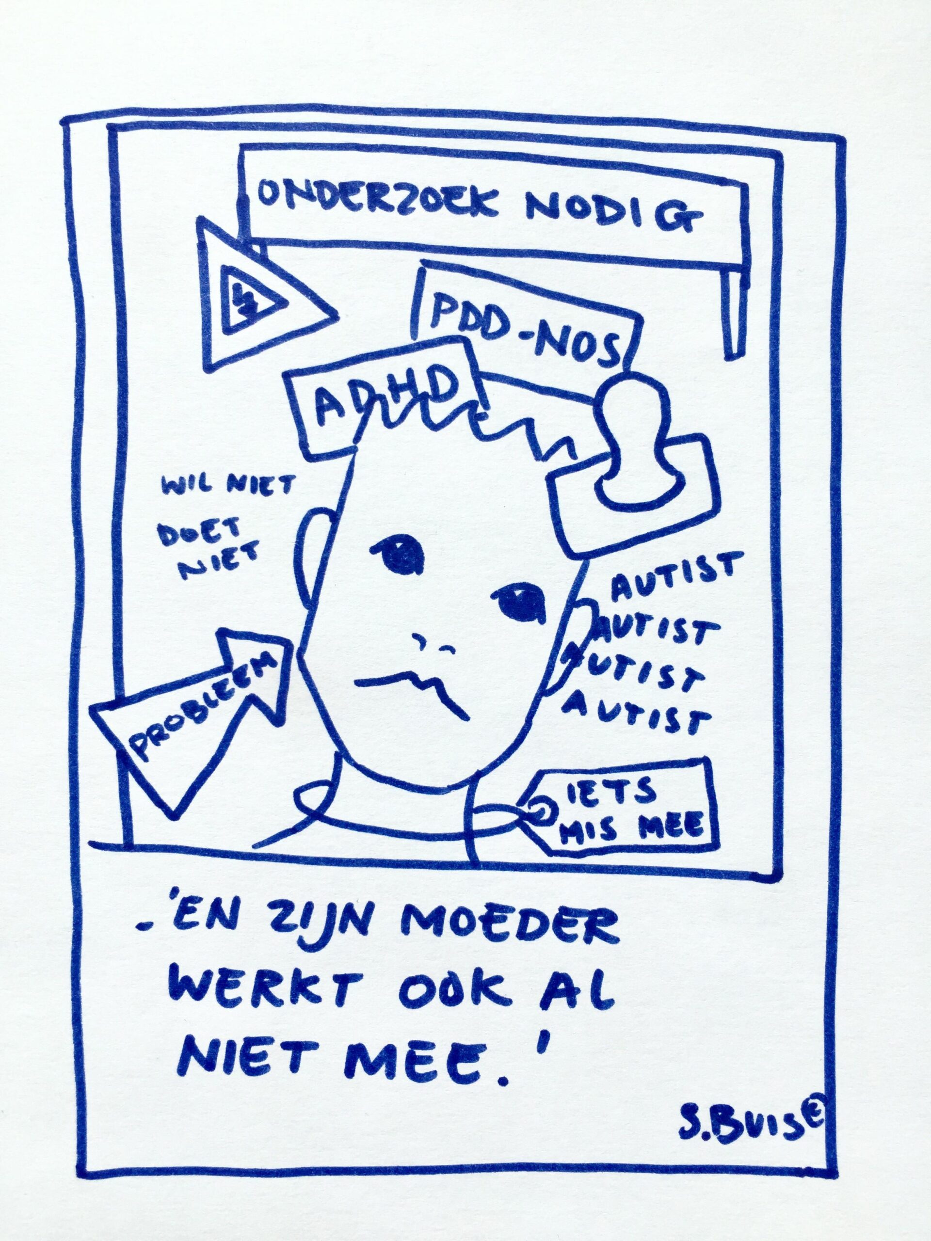 ‘Toen Max acht was moest hij naar een orthopedagoog, want naast hoogbegaafdheid was er behoefte aan een diagnose, vond school. Het eerste wat ze zei was ‘zo, vertel eens, wat is er mis met jou?’ Dat was zo’n schok! Max keek me aan van ‘wat ís dit?’ Maar hij bleef even beleefd als altijd. Hij kreeg het ene onderzoek na het andere. Het aantal misdiagnoses van hoogbegaafdheid is schrikbarend, ook de manier waarop er mee omgegaan wordt. Borderline, narcisme, autisme, hij is op van alles onderzocht. Niet omdat hij het zou hebben, want dat vroeg ik dan wel eerst. Nee, ‘om het uit te sluiten’.’